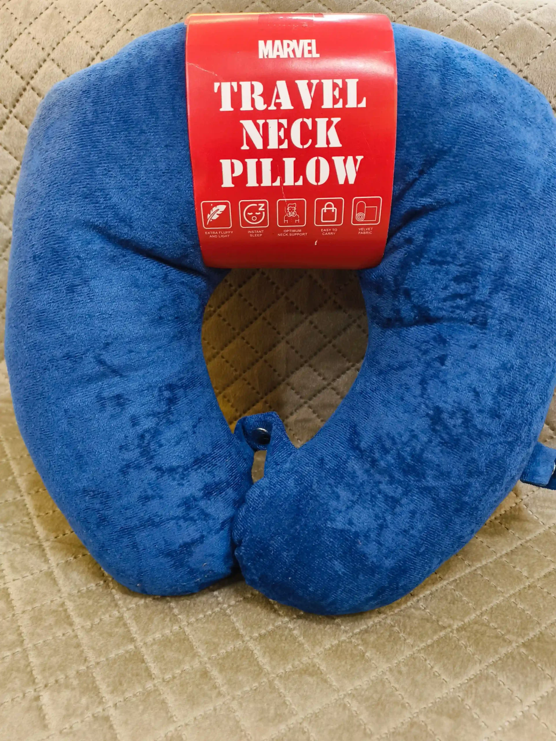& Free ShippingA soft, supportive travel neck pillow with a bold Marvel blue design — comfy and stylish.
